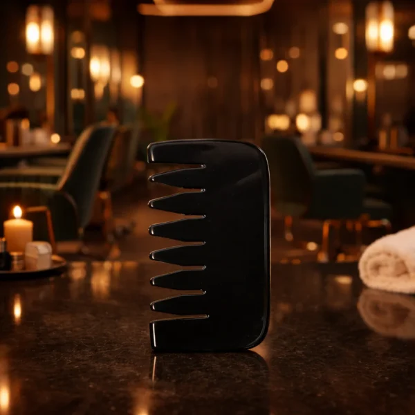 The comb’s toothed edge is expertly shaped to gently massage the scalp, supporting healthy blood flow to the hair follicles while relieving stress and tension. The smooth, polished side is perfect for facial massage—working with the contours of the face to support lymphatic drainage and sculpting techniques.
