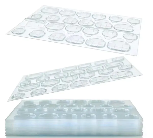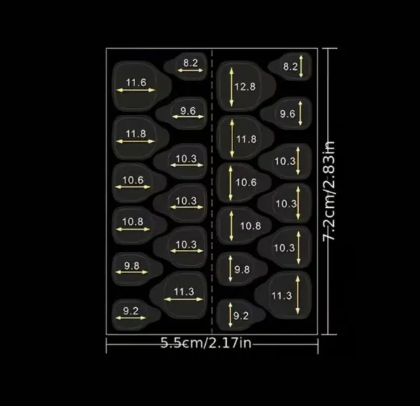 Each sheet contains 24 adhesive tabs in multiple sizes to suit different nail shapes and widths. The flexible transparent material sits comfortably on the nail and adheres securely without slipping, helping streamline the removal process for both technicians and clients.