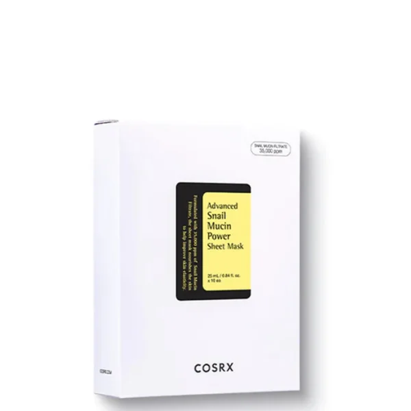 COSRX Advanced Snail Mucin Power Sheet Mask Bundle (10pcs) is a moisturising Korean sheet mask soaked in essence that contains 35,000ppm of snail mucin. This mask sheet works by strengthening the skin barrier, repairing damaged skin and deliver hydration to plump and firm skin. It also helps improve the appearance of acne scars and blemishes by smoothing out skin tone and texture, leaving the skin silky-smooth, firm and supple.