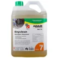 Enyclean will remove grease, oil, greasy cooking fats, smoke films, ink stains and food spills from floors, equipment, machinery, paintwork, ceramic tiles, quarry tiles, concrete, walls, ovens, barbeques and vinyl upholstery. Enyclean may be used in steam cleaners, auto scrubbers, mop-buckets or by spray-and-wipe. Note: Enyclean is not suitable for use on sensitive aluminium surfaces. Do not allow the product or its solution to dry on aluminium. Rinse it off immediately if contact occurs.