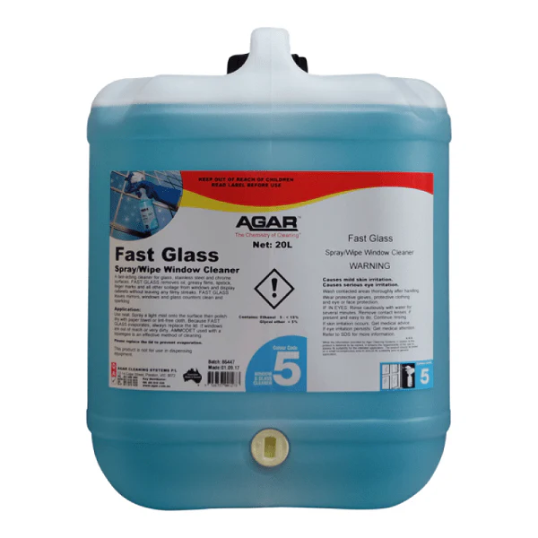 A fast-acting cleaner for glass, stainless steel and chrome surfaces, FAST GLASS removes soilage from windows and display cabinets without leaving streaks.