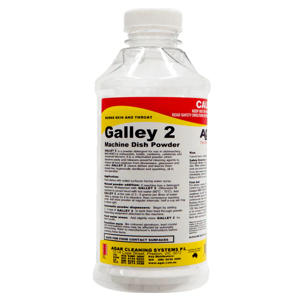 Commercial strength dishwash powder for automatic ware wash machines. Chlorinated and boosted with powerful cleaning agents. Galley 2 will remove all food residues without harming surfaces.