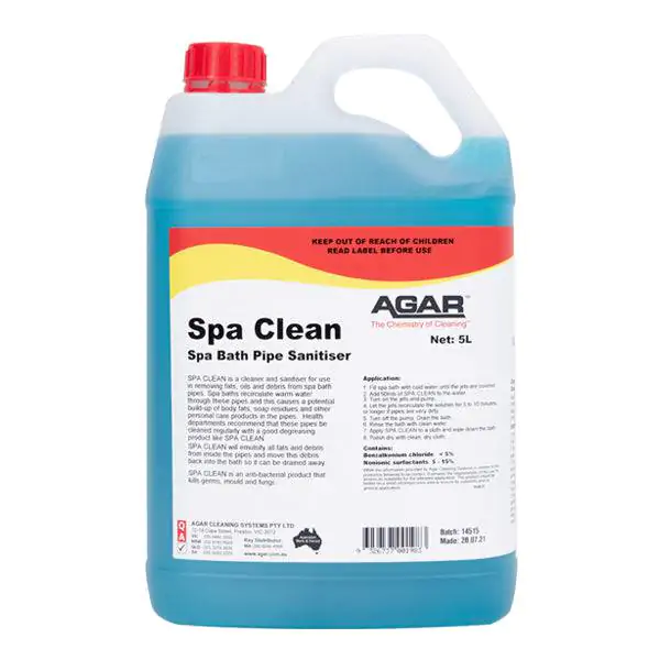 Spa Clean is a cleaner and sanitiser for use in removing fats, oils and debris from spa bath pipes.