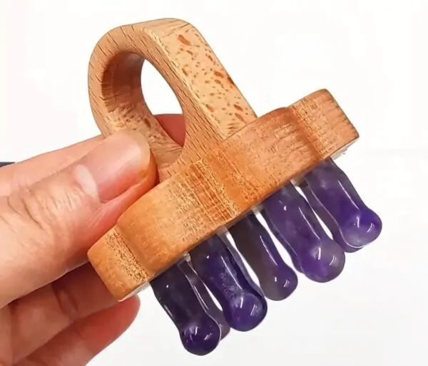 Amethyst Scalp Care Tool is an amethyst scalp massager designed to bring a calm, spa like feel to scalp rituals. With polished amethyst stone tips and an ergonomic wooden handle, it is ideal for Japanese head spa services, relaxing scalp massage add ons, and at home self care.