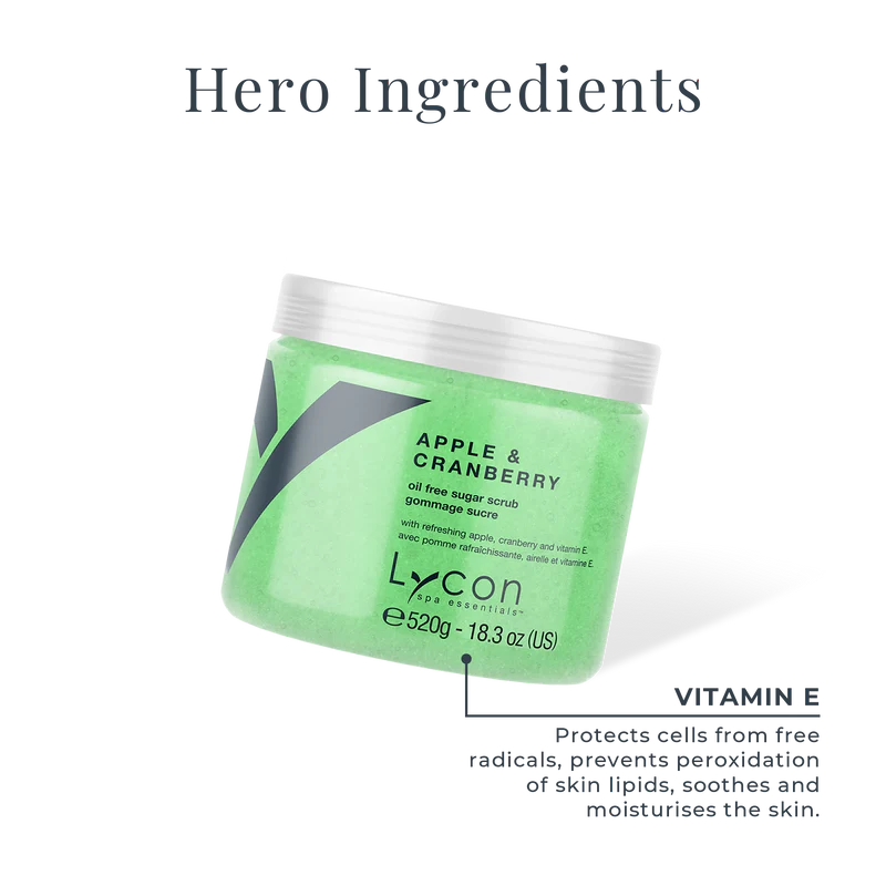 A luxurious spa-quality, oil-free sugar scrub for the entire body, with refreshing apple and cranberry. Gently exfoliates and moisturises at the same time, without leaving oily residue, which can clog skin and create breakouts.