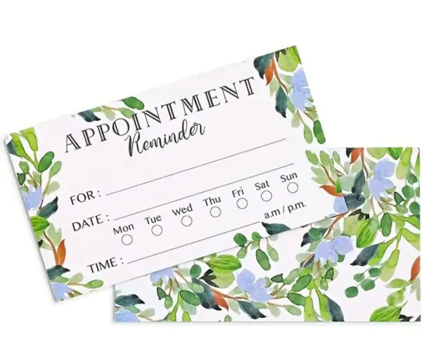Make missed bookings a thing of the past with our Appointment Reminder Cards in a fresh leaf design. Created for busy salons, spas, and beauty clinics, these cards give clients a simple, stylish prompt to remember their next visit. The minimalist greenery adds a calm, professional touch that fits seamlessly with natural or wellness-inspired branding.
