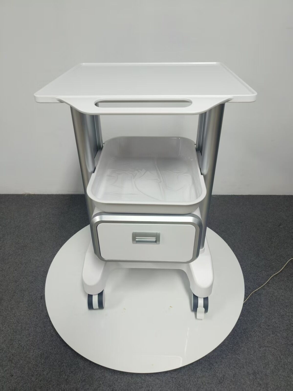 Featuring multiple deep drawers, the Astra Trolley offers ample space to neatly store styling tools, skincare equipment, and accessories, ensuring everything stays organized and easily accessible during treatments. The durable top tray is ideal for placing products in use, while side compartments provide added convenience.
