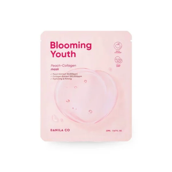 Banila Co Blooming Youth Peach-Collagen Mask is a vegan sheet mask packed with peach collagen to improve skin elasticity while moisturising the skin for a youthful dewy looking complexion.