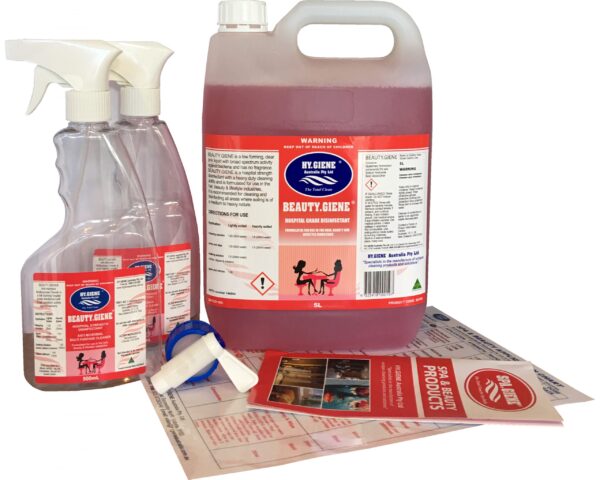 BEAUTY.GIENE is a TGA approved multipurpose beauty salon cleaner, degreaser, sanitiser and Hospital Grade Disinfectant that kills 99.99% of germs including Pseudomonas aeruginosa, Staphylococcus aureus, Salmonella choleraesuis and CORONAVIRUS SARS-CoV-19 (COVID-19). ARTG No. 353369.