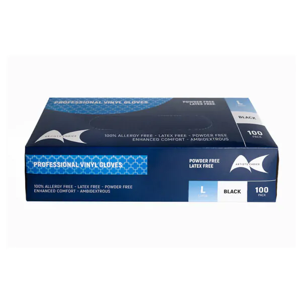 These Black Vinyl Gloves (Large) are professional-grade disposable gloves designed for superior hygiene, comfort, and protection in salon, spa, and beauty environments. Made from durable vinyl, they are latex-free, powder-free, and allergy-safe, making them ideal for professionals and clients with sensitive skin or latex allergies.