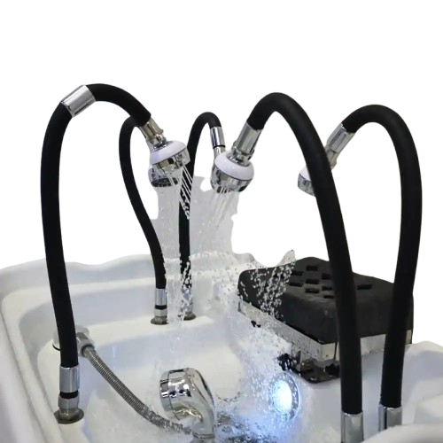 Featuring five flexible precision head jets, the Blossom Head Spa delivers targeted, soothing water flow that enhances scalp circulation and promotes deep relaxation. Each jet is strategically positioned to create a calming and immersive sensory experience, helping to support scalp health and overall wellbeing.