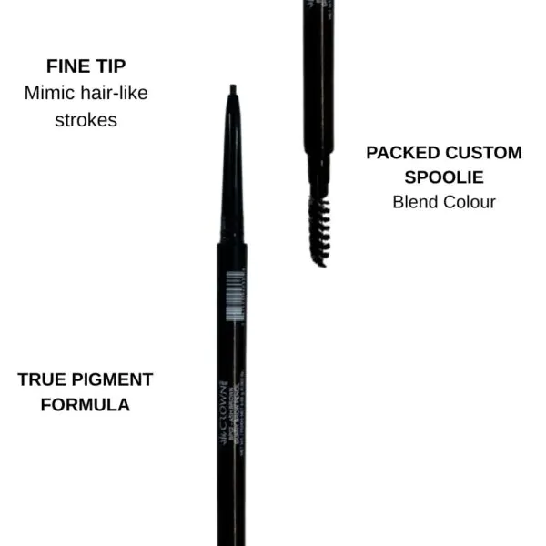 Crowns ultra-slim, retractable eyebrow pencil if perfect for outlining and detailing brows with professional-quality accuracy. The ultra-fine tip creates hair like strokes in areas of the eyebrow, while the spoolie end blends for a natural-looking finish. Available in 7 Colours.
