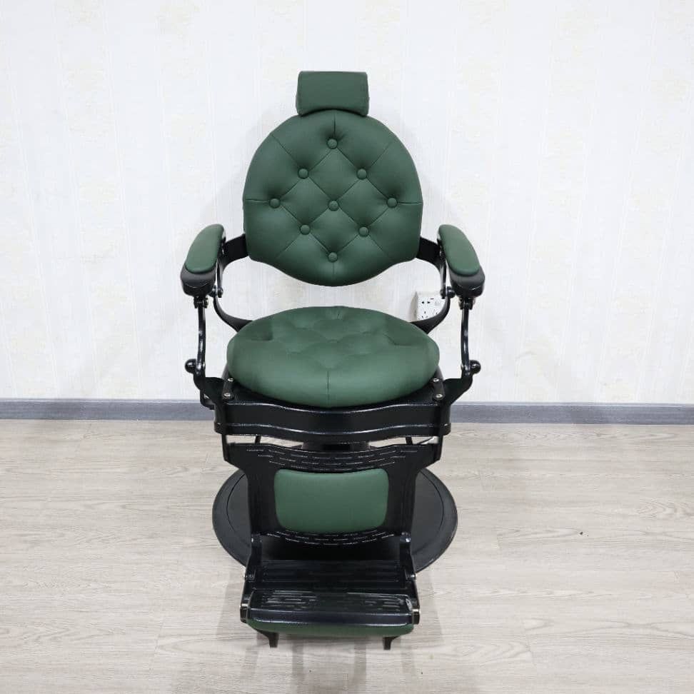 The Bravo Barber Chair is a timeless piece designed to elevate the look and feel of any barbershop. Upholstered in rich deep green leatherette with elegant button-tufted detailing, it delivers both style and comfort for your clients. The bold black powder-coated frame creates a striking contrast, enhancing its vintage-inspired design while ensuring strength and durability for daily professional use.