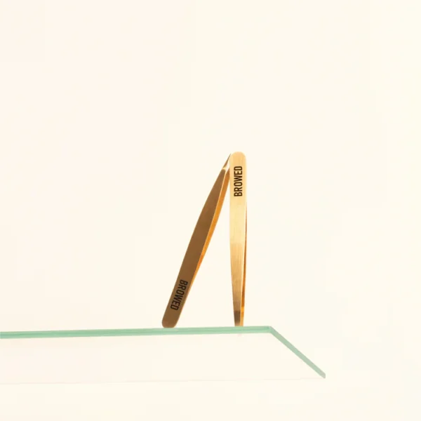 The Browed Gold Slanted Tip Tweezers are a professional essential for precise brow shaping and controlled hair removal. Featuring sharp, hand-aligned slanted tips, they securely grip and remove even the shortest and finest hairs from the root, making them ideal for creating clean lines, refining arches, and tidying stray hairs after waxing, tinting, or lamination.