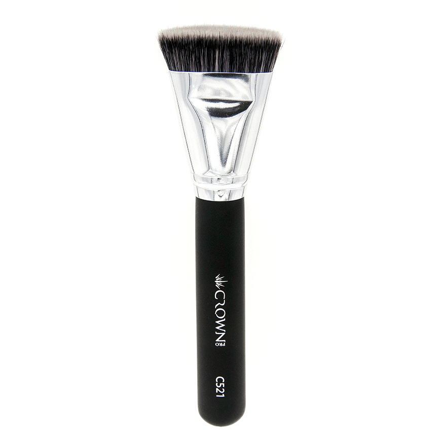 Thanks to its densely packed fibers and flat, compact head, the Pro Flat Contour brush easily glides under the cheekbone and with the hollow of the cheek, creating a very dramatic and linear contour application. The soft bristles blend and disperse the product without losing their compact shape, leaving you in total control over product application. The Pro Flat Contour Brush is also the perfect tool for baking and cleaning up contour lines due to its flat surface and its ability to pick up large amounts of loose setting powders.