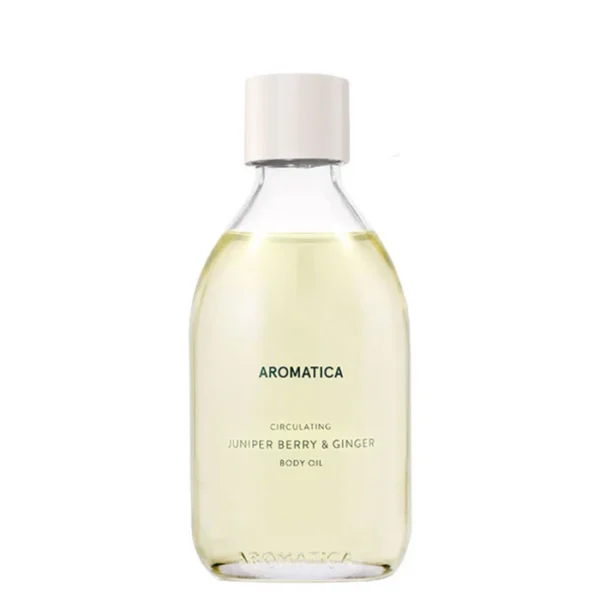 AROMATICA Circulating Body Oil Juniper Berry & Ginger is a harmonious blend infused with the purifying essence of Juniper Berries and the soothing warmth of Ginger. This formula nourishes and hydrates your skin, promoting balance and rejuvenation for both your body and mind. Juniper berry, known for its cleansing properties, imparts a comforting sensation, while Ginger infuses warmth to help relieve physical and mental stress.