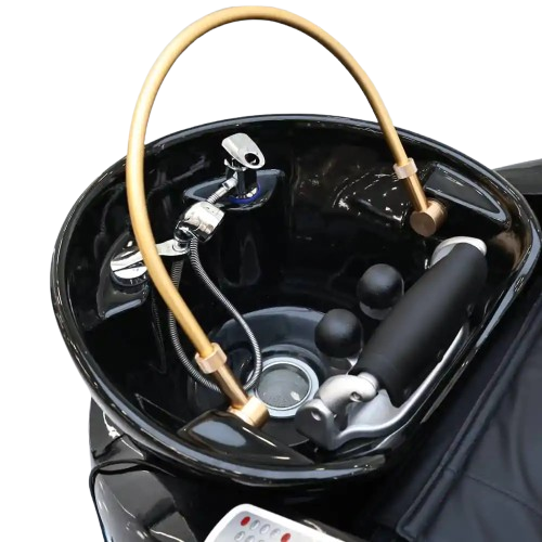 The integrated hair washing handle provides controlled precision during rinsing and treatment application, making it ideal for scalp detox services, deep cleansing rituals, hydration therapies, and luxury hair spa treatments. As a fully plumbed system, it ensures reliable water pressure and seamless operation, even in busy professional environments.