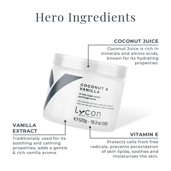A luxurious spa-quality, oil-free sugar scrub for the entire body, with summery coconut & vanilla. Gently exfoliates and moisturises at the same time, without leaving oily residue, which can clog skin and create breakouts.