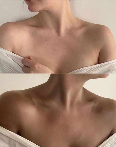 RInse with LUKEWARM WATER for only 45 seconds. Do not use soaps or scrubs. The water will rinse off the temporary brown bronzers. The tan will continue to develop and deepen in color over the next 24 hours following the rinse. Regular showering may be taken 8 hours after the first rinse. Results should last 7-10 days without patchiness if well maintained. To ensure long lasting results, apply a body moisturizer daily, do not use exfoliators, and avoid swimming and bathing.