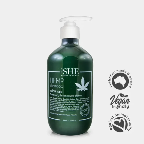Aqua (Water), Cocamidopropyl Hydroxysultaine, Decyl Glucoside, Hydroxyethylcellulose, Xanthan Gum, Benzyl Alcohol, *Cannabis Sativa (Hemp) Seed Oil, Hydrolyzed Wheat Protein, Parfum (Fragrance), *Panax Quinquefolium (Ginseng) Root Extract, *Cinchona Succirubra Bark Extract (China Bark), *Punica Granatum Extract (Pomegranate), Ethylhexyl Methoxycinnamate, Sodium Benzoate, Dehydroacetic Acid, Disodium EDTA, Linalool, Amyl Cinnamal, Limonene, Geraniol. *Organic Ingredient
