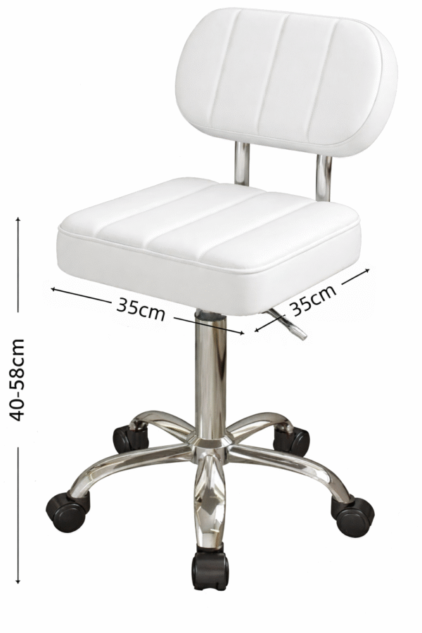 Designed to meet professional salon standards across Australia, this adjustable salon stool with back support is built to handle daily use in high traffic environments. The sturdy base and smooth wheels ensure long lasting performance and reliability.