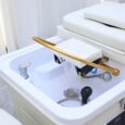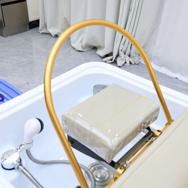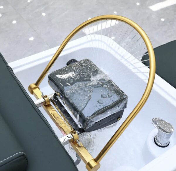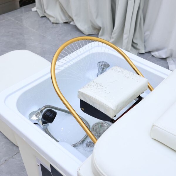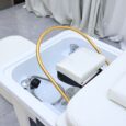 Position the head rest at the basin edge or on the treatment table where the client’s neck rests, then sanitise between clients with your usual surface disinfectant.