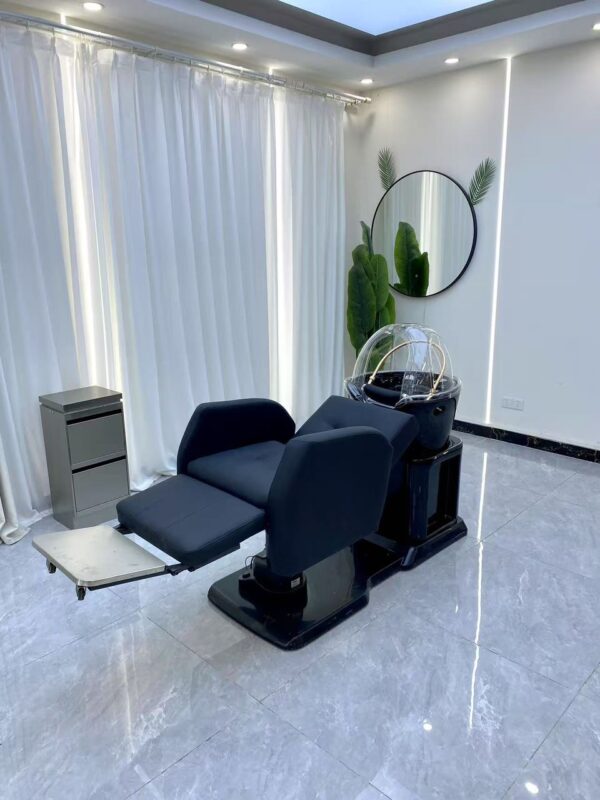 Finished in a sleek black design, the Compact Japanese Head Spa Hairdressing Basin delivers a polished, professional aesthetic while offering the flexibility to perform multiple services within one streamlined chair. It is an excellent choice for salons wanting to elevate their service menu, improve workflow, and provide a premium client experience.