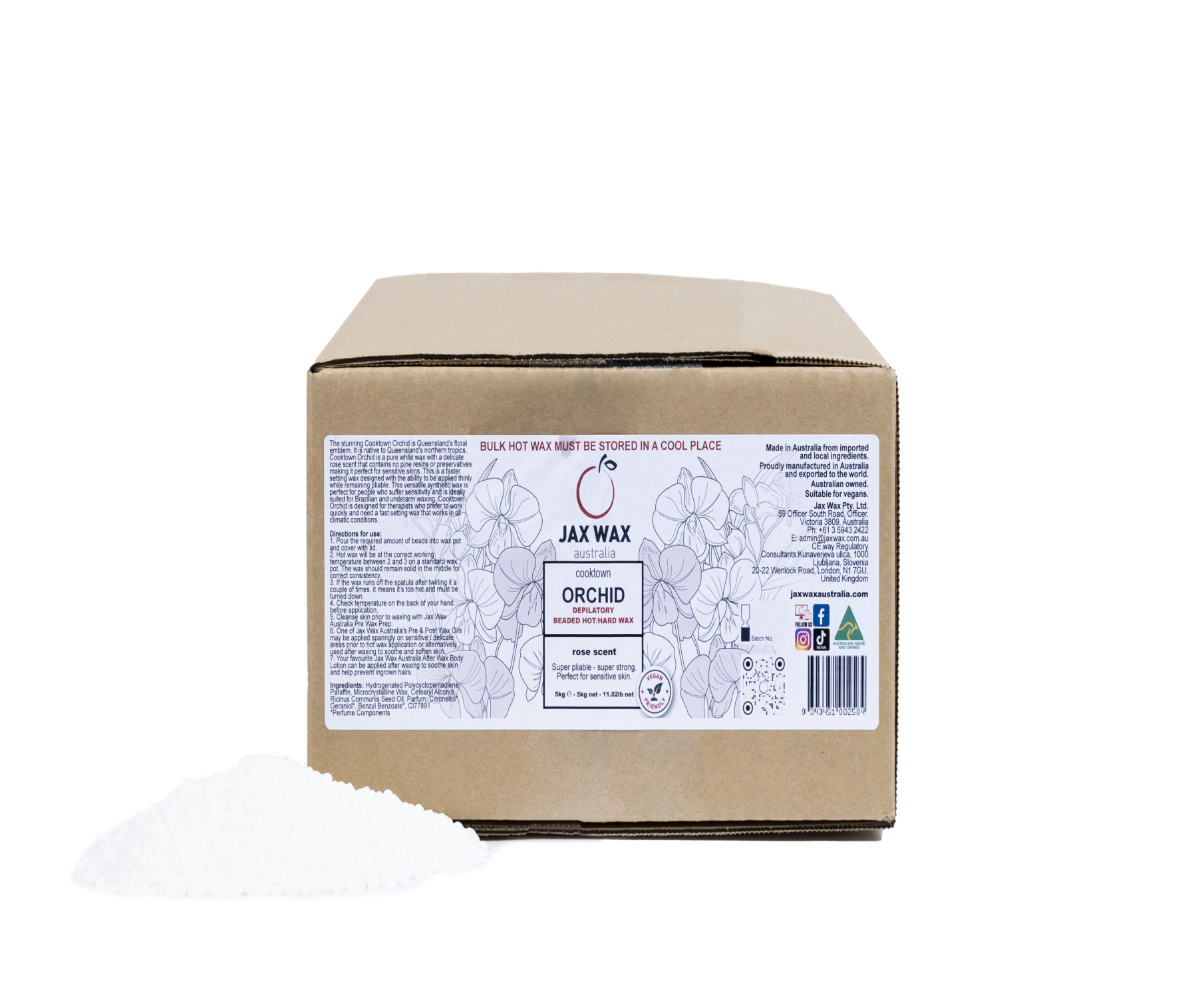The stunning Cooktown Orchid is Queensland’s floral emblem. It is native to Queensland’s northern tropics and is named after the northern Queensland town of Cooktown. The Cooktown Orchid grows in a wide variety of habitats around the Cape York Peninsula ranging from coastal scrub on trees and rocks, to mangroves, riverine vegetation, rainforest, vine thickets, gullies in open forest and even swamps. Jax Wax Australia Cooktown Orchid Wax is a formulated for mainly humid tropic conditions as it is a faster setting wax designed with the ability to be applied thinly while remaining pliable. The Australian indigenous people use the Cooktown Orchid for medical purposes, and outer foliage was heated and used as a decorative binding on their tools, waist-belts and other ornaments. Jax Wax Australia’s Cooktown Orchid Wax is a versatile synthetic wax formulated without pine resin and is perfect for people with sensitive skin. Ideal for brazilian and underarm waxing.