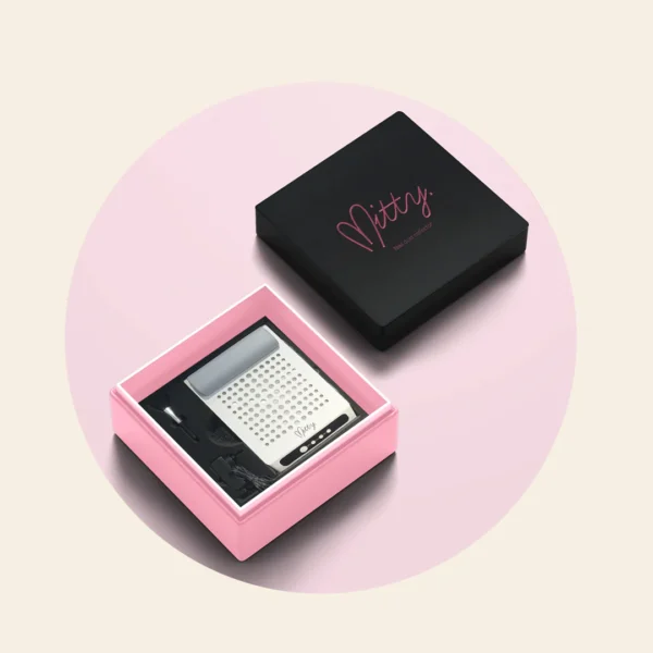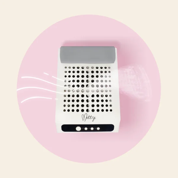 Keep your work space neat and dust-free with the Mitty Cordless Nail Dust Collector. Ideal for the nail pro who prizes cleanliness above all things. This compact design is versatile for any size work surface, with a whisper-quiet motor and powerful vacuum suction. Easy to maintain with an acetone-resistant body and reusable filter.