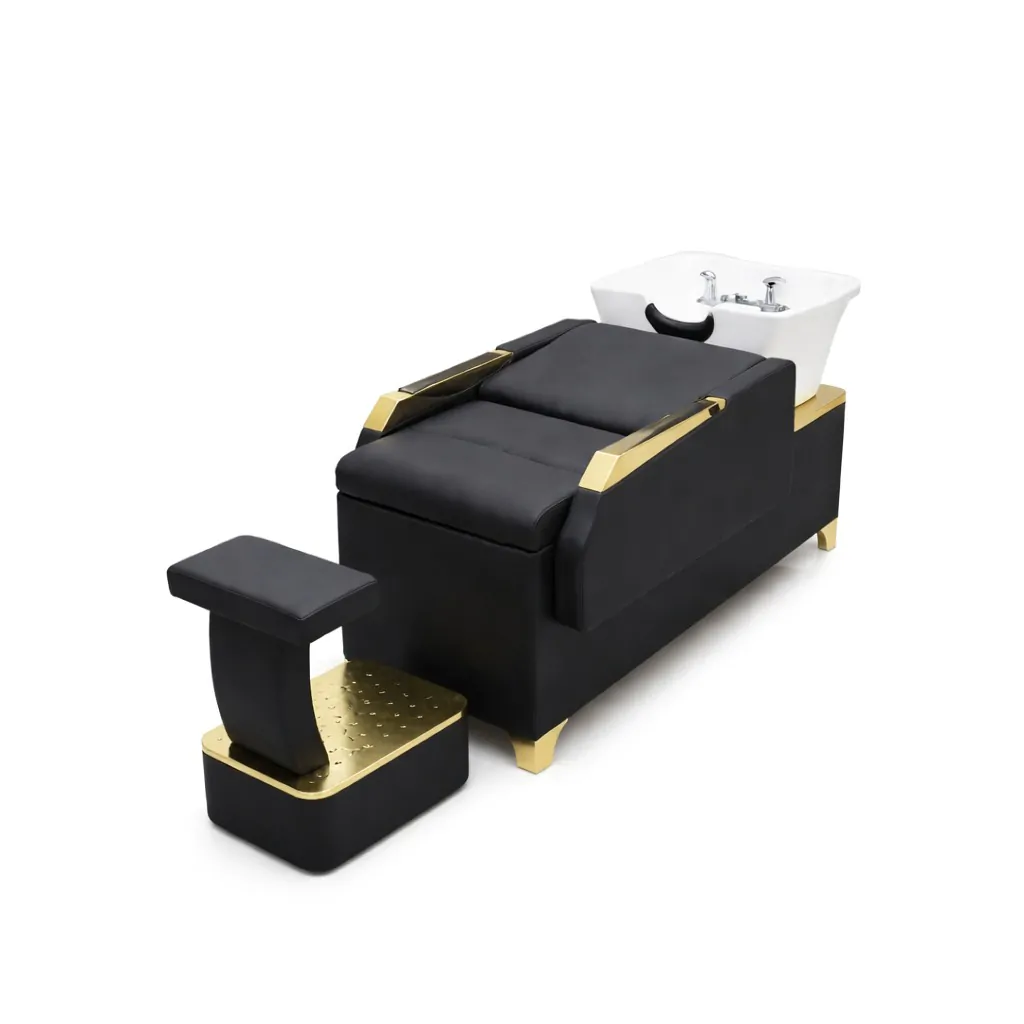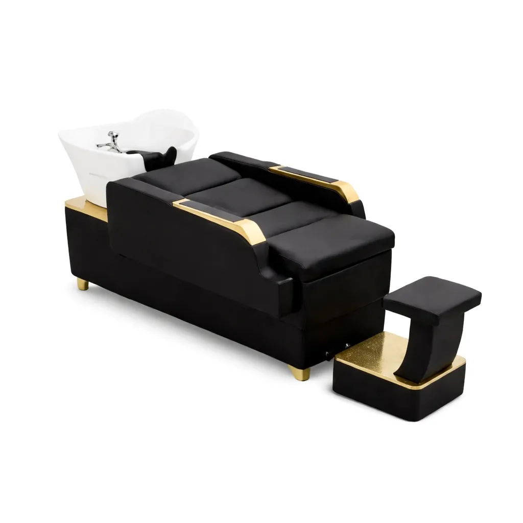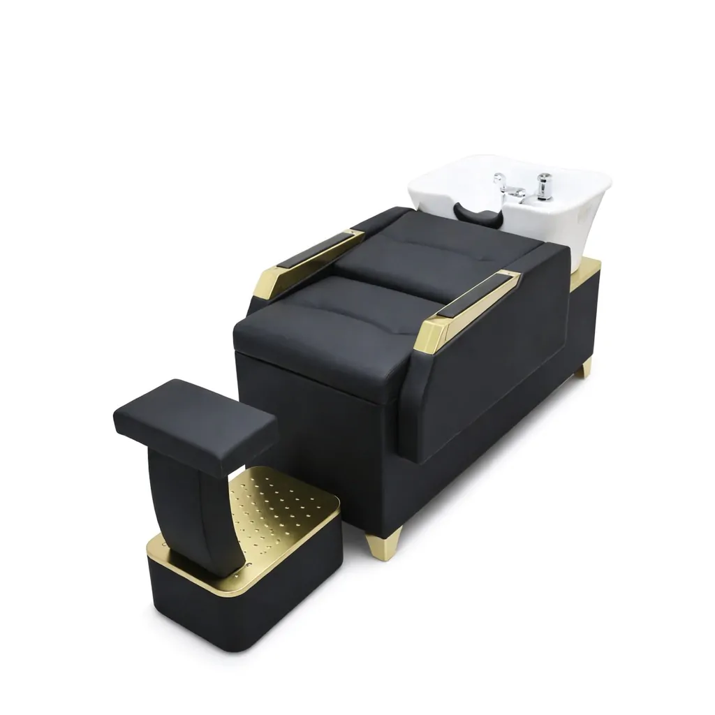 Elevate your salon experience with the Daihaku Japanese Head Spa, Plumbed Black and Gold, a sophisticated multifunction treatment system designed to deliver authentic Japanese head spa rituals alongside professional dry pedicure services within one seamless setup.