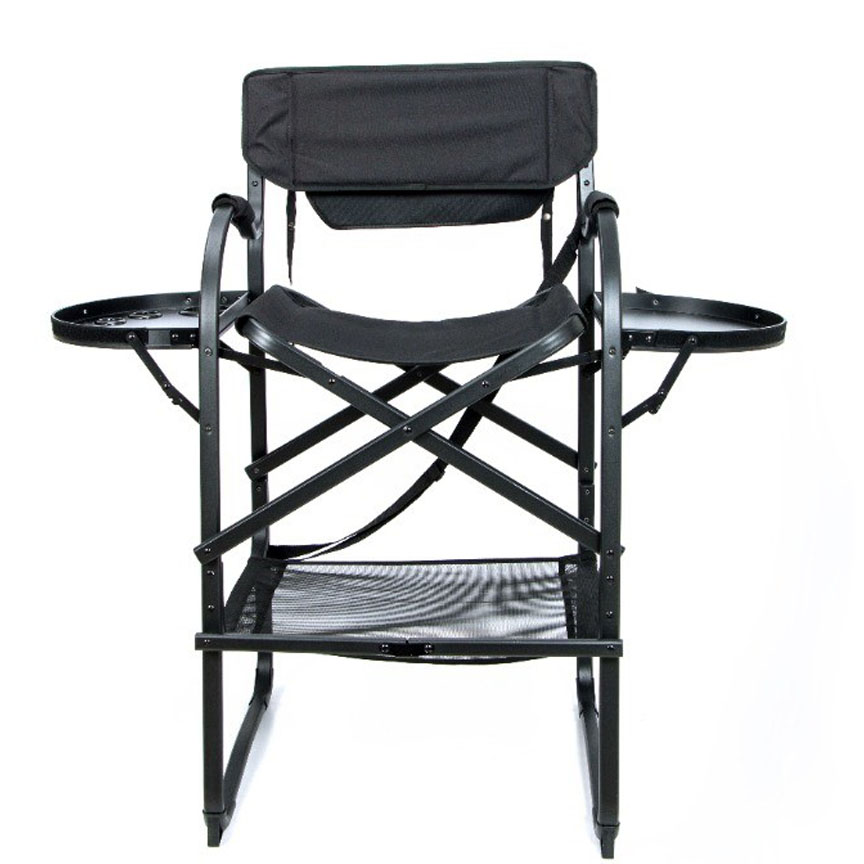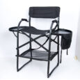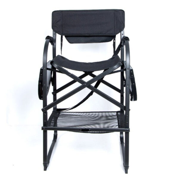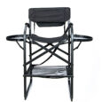 This solid, thoughtfully-designed chair offers a host of features. An anodized aluminium frame has an impressive 150kgs weight limit, yet is lightweight for easy, folding portability. Unique eight-point ground contacts and four side bars ensure rock-solid stability, and convenient touches abound, from a pop-out side table with cup holder to dual side pockets for small item storage.