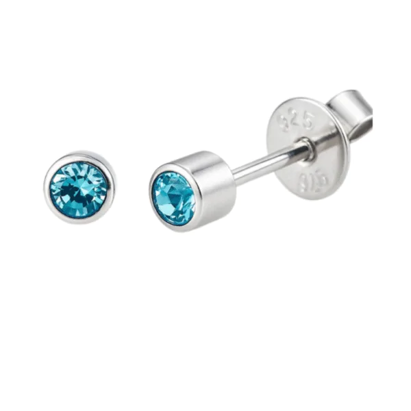 Capture the serene beauty of the sea with these exquisite Sterling Silver Bezel Birthstone Earrings, featuring the tranquil Aquamarine — the birthstone of March. Each earring is meticulously crafted from premium sterling silver (S/S), designed with a 4mm bezel setting that elegantly secures a 3mm aquamarine crystal, radiating a captivating ocean-blue hue.