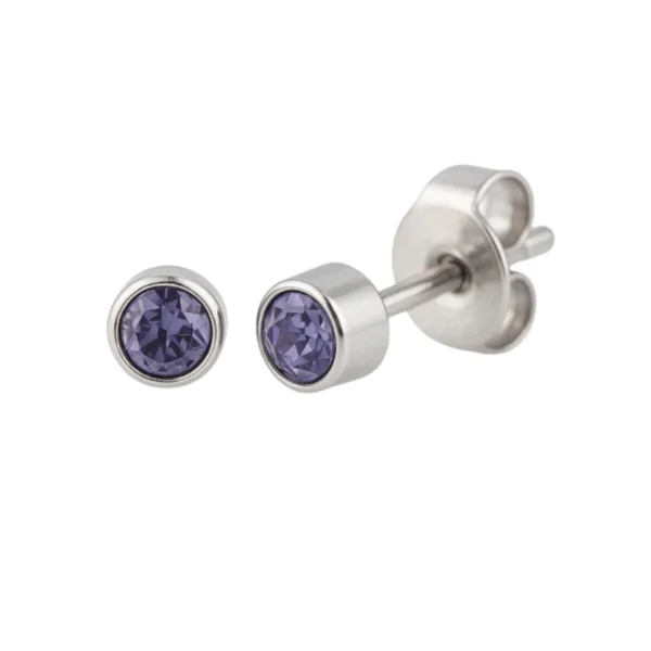 EARP:21-306-fp – Sterling Silver 4mm Bezel Birthstone Earrings with 3mm Tanzanite Crystal (June)