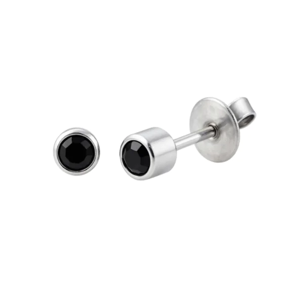 EARP:21-313-fp – Sterling Silver 4mm Bezel Birthstone Earrings with 3mm Jet Crystal