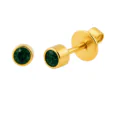 Rich and captivating, these gold-plated bezel-set birthstone earrings celebrate the luxurious beauty of May’s gem — Emerald. Each earring features a 3mm faceted emerald-green crystal set within a 4mm polished gold-plated stainless steel bezel, radiating sophistication and timeless allure.
