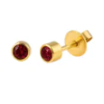 EARP:22-307-fp – Gold-Plated 4mm Bezel Birthstone Earrings with 3mm Ruby Crystal (July)
