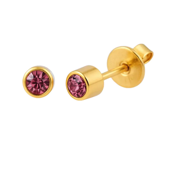 EARP:22-310-fp – Gold-Plated 4mm Bezel Birthstone Earrings with 3mm Rose Crystal (October)