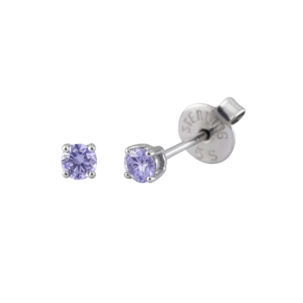 EARP:33-316-fp – Sterling Silver 3mm Tiffany Cubic Zirconia Stud Earrings (Lavender)