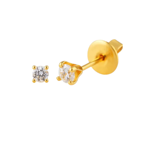 Elegant and timeless, these gold-plated Tiffany-style stud earrings are the perfect touch of sophistication for any occasion. Each earring features a 3mm round-cut clear cubic zirconia stone, delicately secured in a four-prong Tiffany setting that allows maximum light exposure for exceptional brilliance and sparkle.
