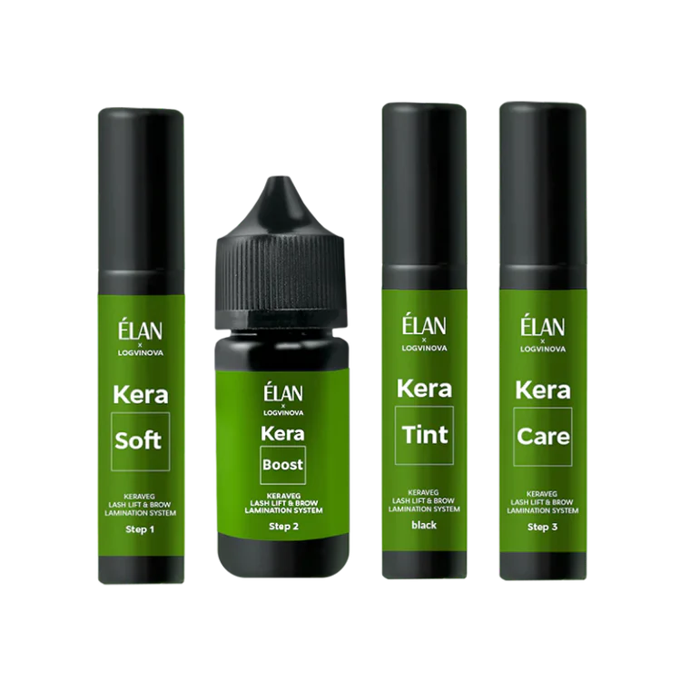 The set of innovative KeraVEG brow and lash lift system contains: