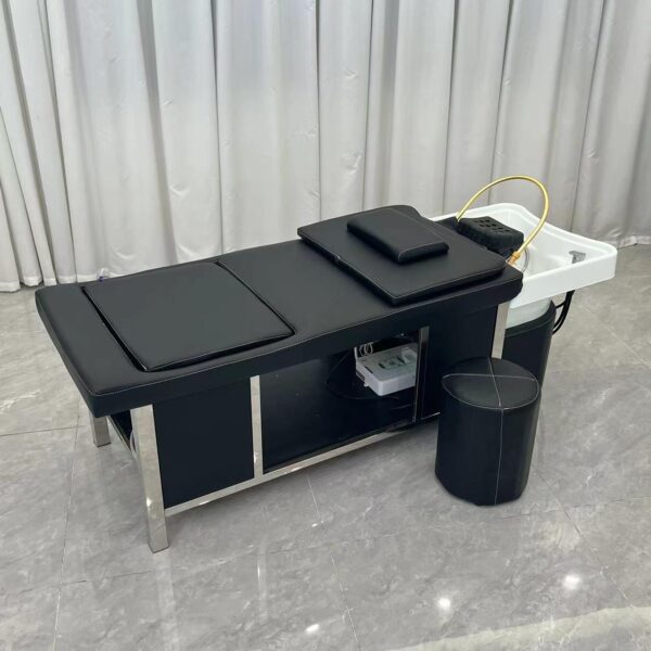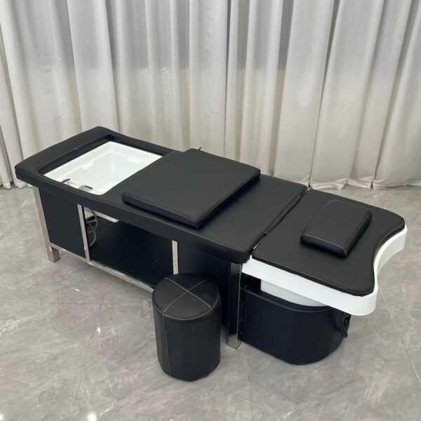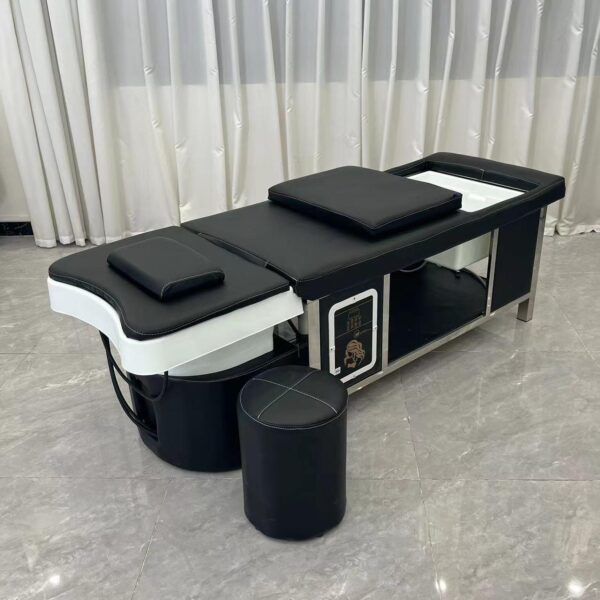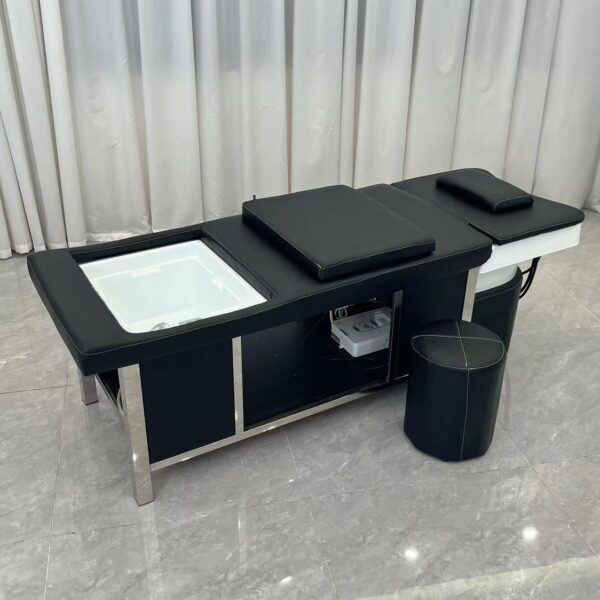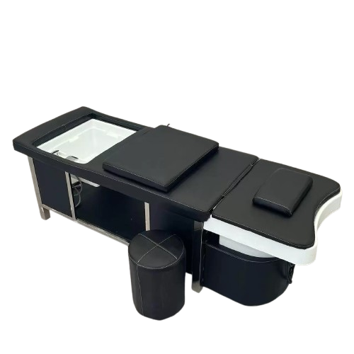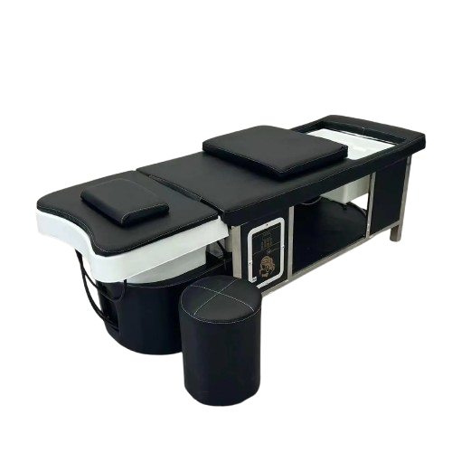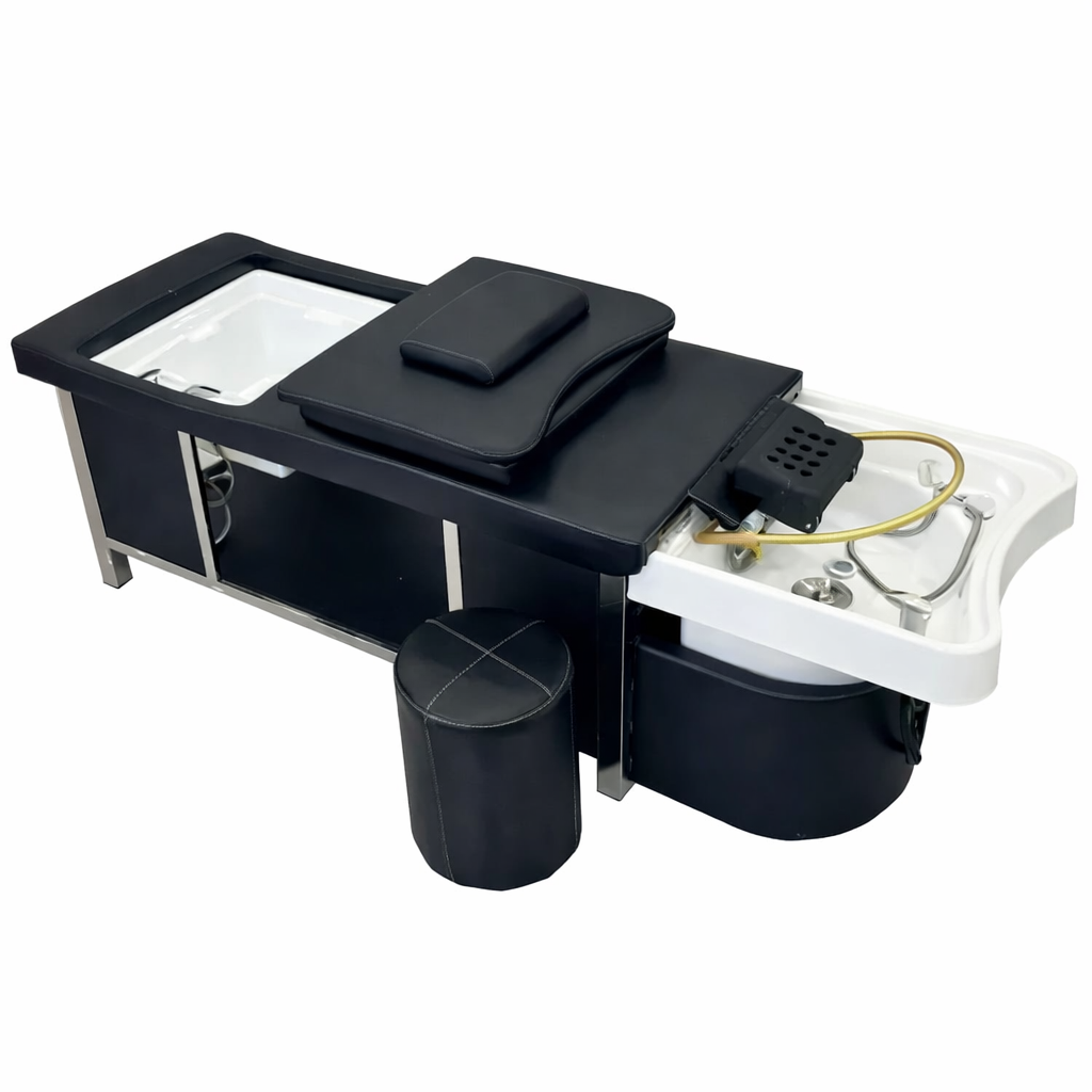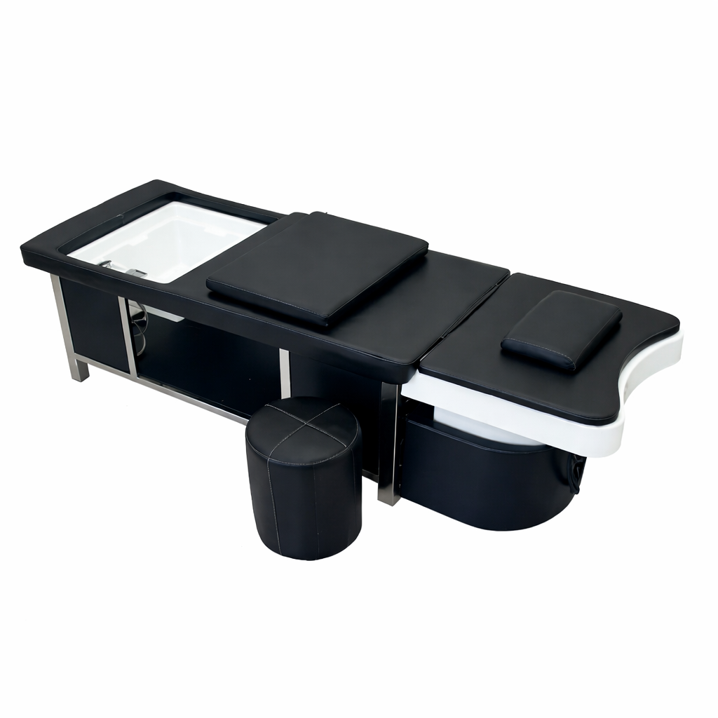 Engineered with client comfort in mind, the bed provides full body support to ensure relaxation throughout extended treatments. The structured cushioning supports the head, neck, back, and legs, reducing pressure points and allowing clients to remain comfortable during longer scalp and wellness rituals. Comfort plays a key role in client retention and repeat bookings.