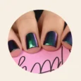 1. Apply a base colour. The base can be normal nail polish or gel polish. Any dark colour is OK as each colour gives a different effect. We recommend black for the best result if you want the maximum mirror chrome nail design.