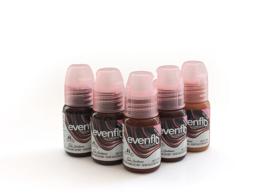 Born out of Lulu Siciliano’s passion for her craft, Evenflo Colors is a custom palette that leaves all guesswork aside, letting you focus on what’s important – results. There are 5 essential colors any artist would need to be able to work on a client of any ethnicity. The colors can be used as-is or they can be modified to cool or warm shades if needed, delivering natural-looking results instantly. All pigments have gone through gamma-ray sterilization and are vegan-friendly and cruelty-free.