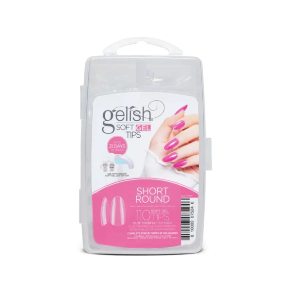 Create picture-perfect nails in minutes with Gelish Soft Gel Tips in Short Round. Each tip is made from lightweight, durable soft gel material that ensures a comfortable fit and natural look. Pre-shaped for convenience, these tips save time while delivering consistent results. Designed for use with the Gelish Soft Gel system, they adhere seamlessly for up to 3 weeks of wear. Ideal for clients who love a chic, versatile nail shape that complements any style.