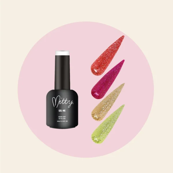 When you want a little glitter with your glam turn to Mitty Gel-Me Platinum Glitter to set the mood. A touch of sparkle is just what you need to complement this super glitter gel polish.