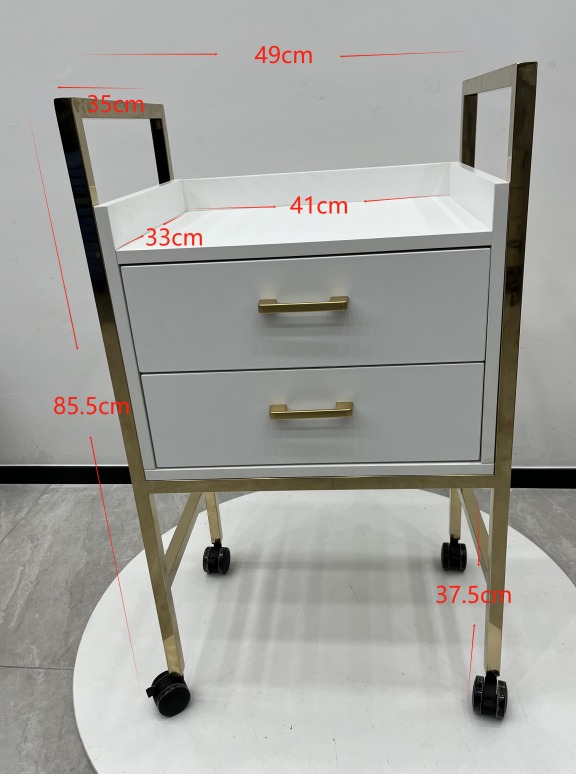 Gold and White 2 Drawer Spa Trolley – Elegant Salon Storage Cart