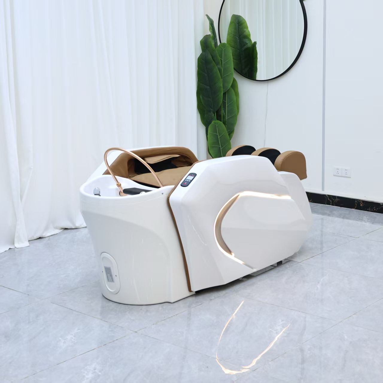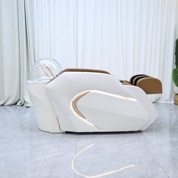 With its white and taupe colour palette, this unit complements luxury salon and spa interiors. Because it integrates both head spa and massage functions, it allows businesses to offer higher-value treatments while making efficient use of space.