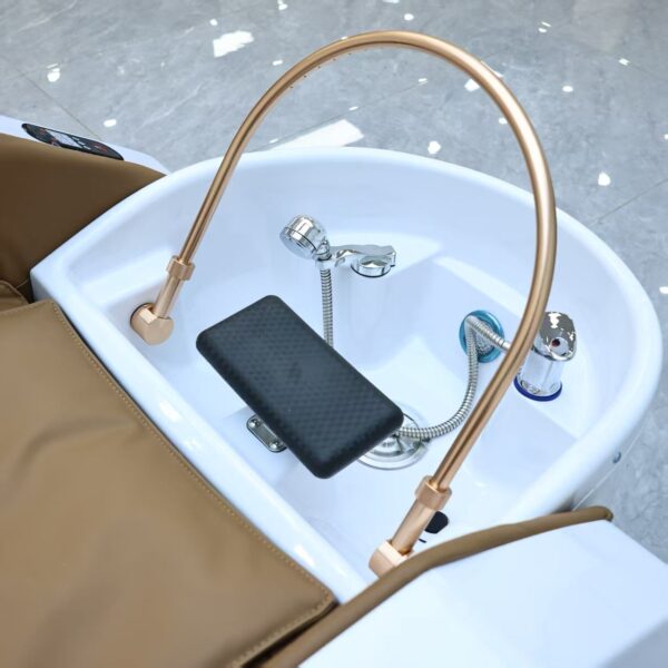 The Gold Deluxe Japanese head spa with massage chair is a premium salon unit designed to deliver advanced scalp treatments alongside full-body relaxation. This elegant system combines traditional Japanese head spa methods with modern massage chair comfort, creating a complete spa experience in one refined design.