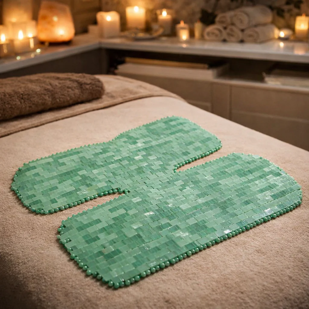 The Green Aventurine Neck and Chest Mask is a premium wellness tool, designed to elevate your treatment offerings with the combined benefits of crystal therapy, lymphatic drainage, and skin rejuvenation. Tailored for the often-overlooked neck and décolletage areas, this handcrafted mask delivers a cooling, calming experience rooted in traditional healing practices—perfect for enhancing facials, meditative rituals, and wellness spa packages.