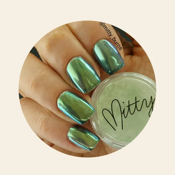 Mitty nail chrome powder is made with FDA, EU, & AU compliant ingredients. Cosmetic grade pigments.